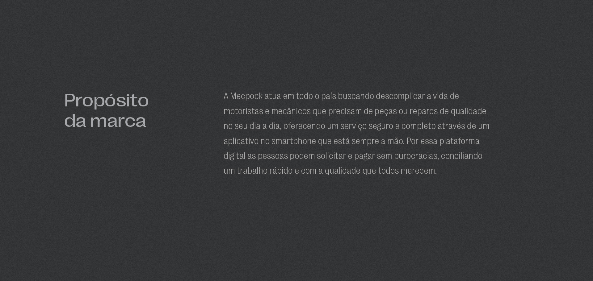 Mecpock é uma empresa de intermediações de serviços e negócios do setor automotivo para pessoas físicas ou jurídicas. Ela oferece através de uma plataforma digital soluções para: solicitação de serviços automotivos, peças e produtos automotivos, além de disponibilizar soluções para efetuação de pagamentos, atendendo de forma especializada e de acordo com as necessidades de cada cliente. Seu nome é inspirado na junção de duas palavras que traduzidas à lingua portuguesa significam mecânica de bolso.